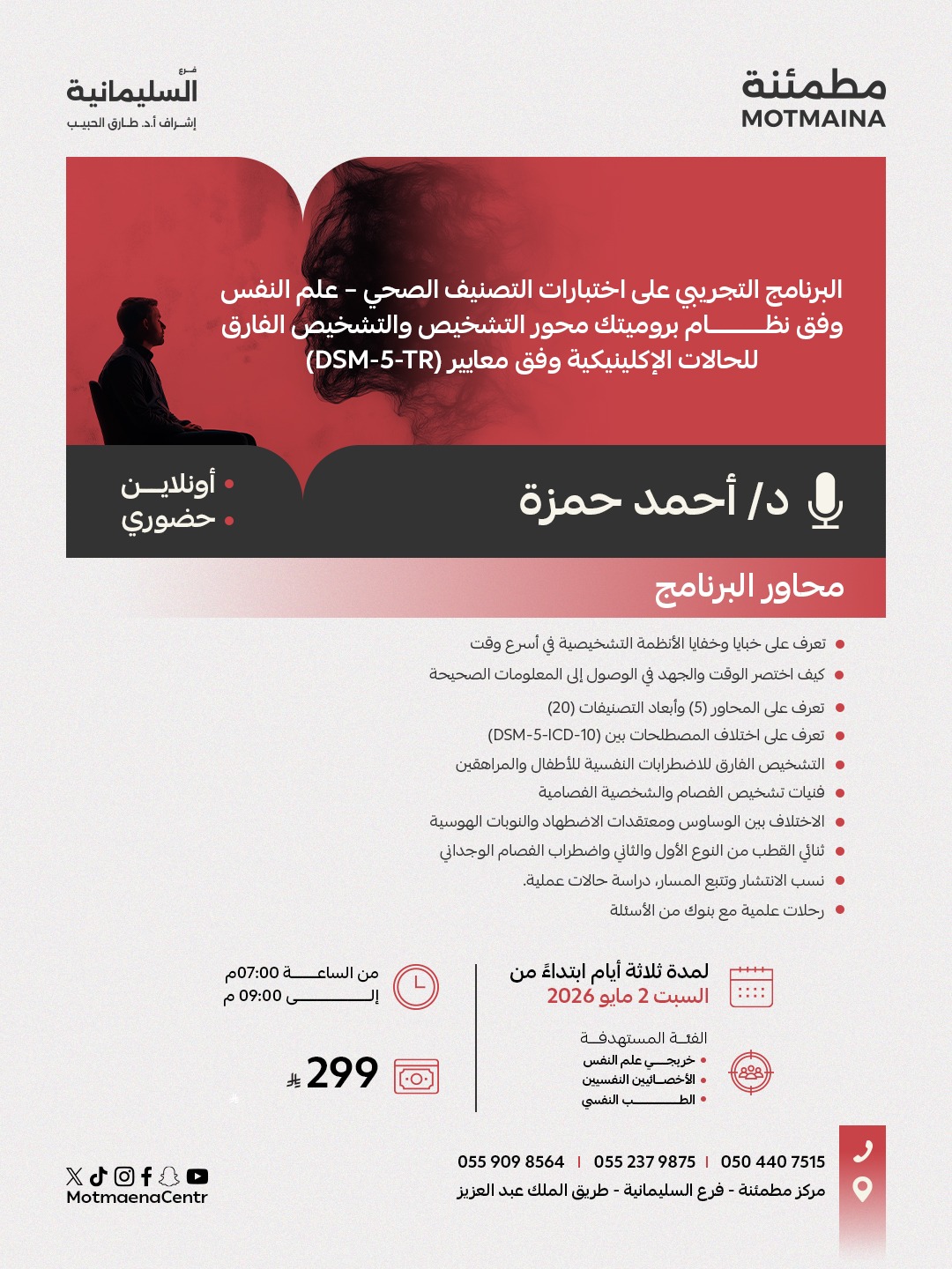 الفئة المستهدفة ( . خريجي علم النفس . الأخصائيين النفسيين . الطب النفسي )
